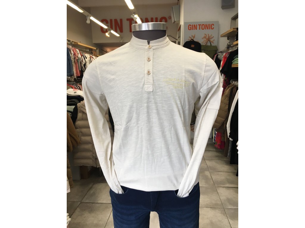 Triko s dlouhým rukávem na knoflíčky ke krku a krátkým mini stojáčkem